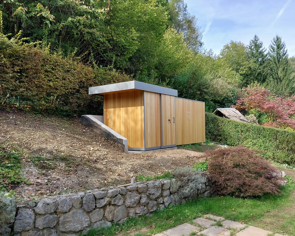 Wir können ein Cubie-Gartenhaus nach Maß anfertigen. Wir gehen voll und ganz auf die Dimensionen und das Terrain ein.