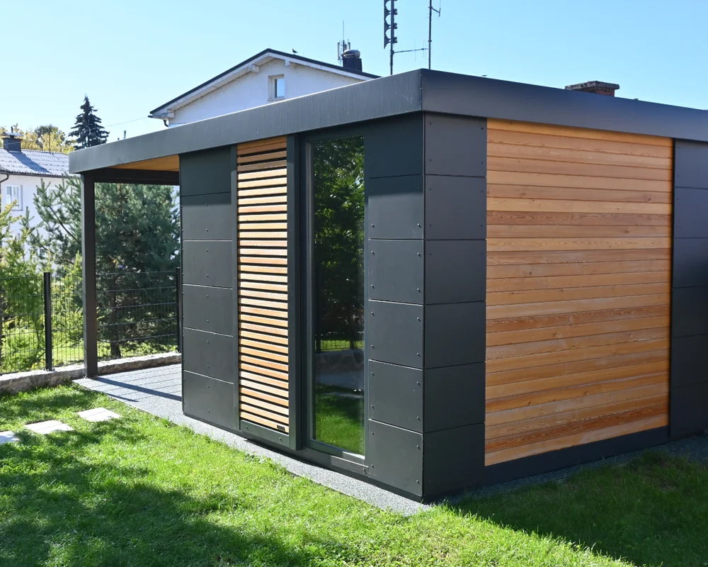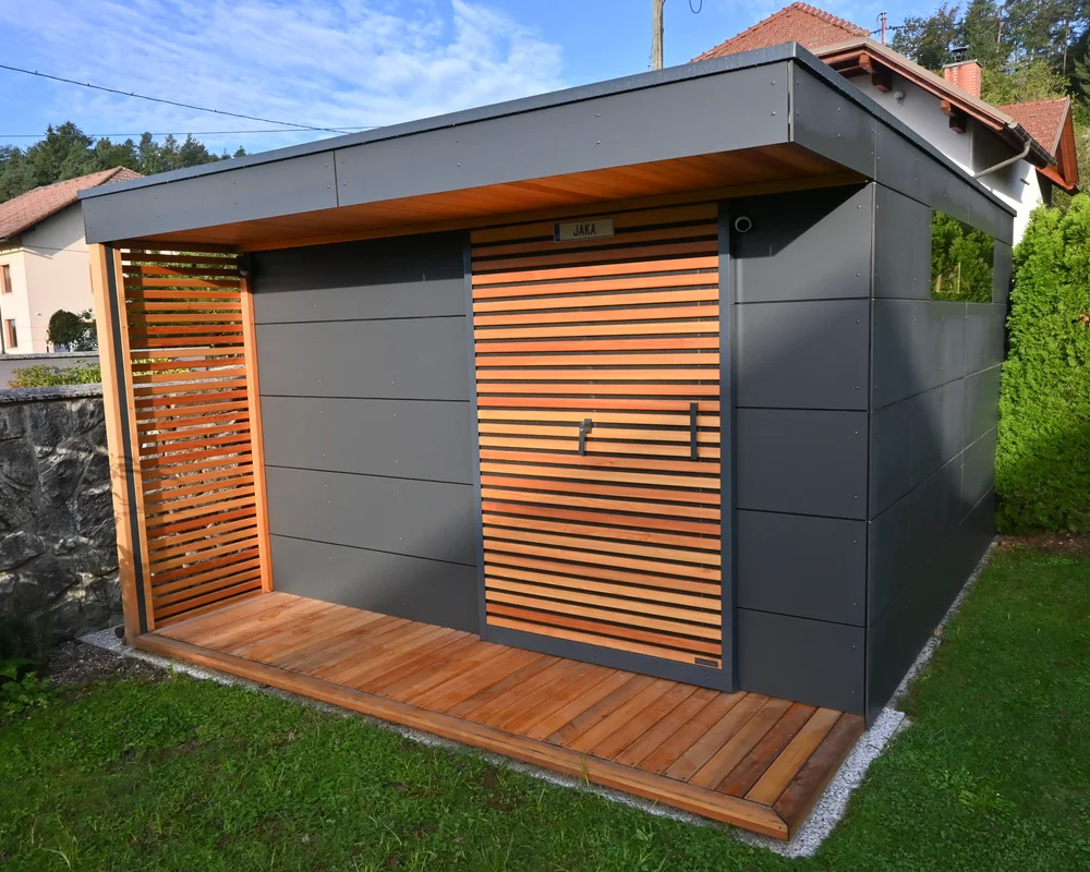 - Okno: fiksno okno iz zatemnjenega kaljenega stekla s kovinsko zaključno obrobo v barvi hiške. Opcijsko lahko vgradimo okno z možnostjo odpiranja.